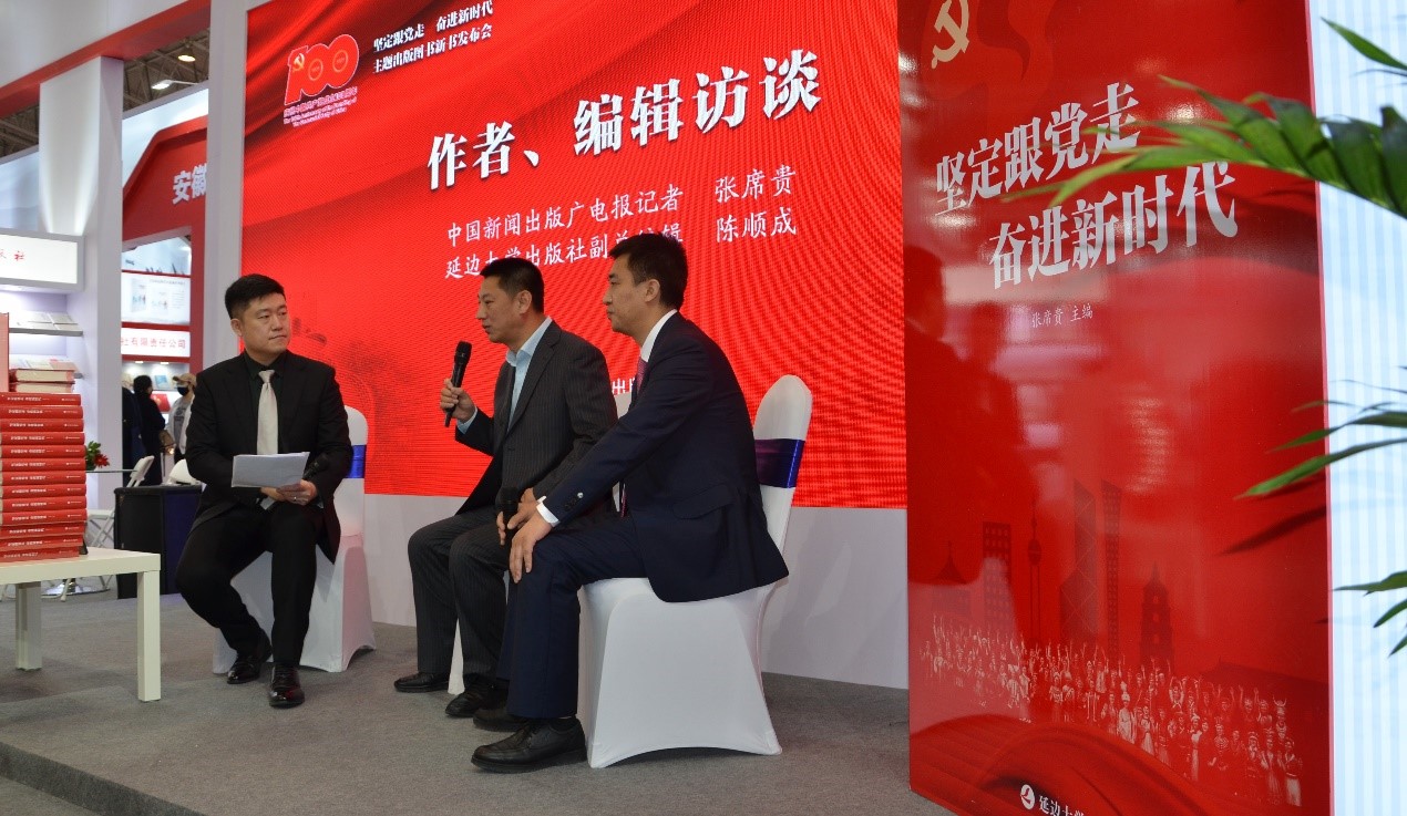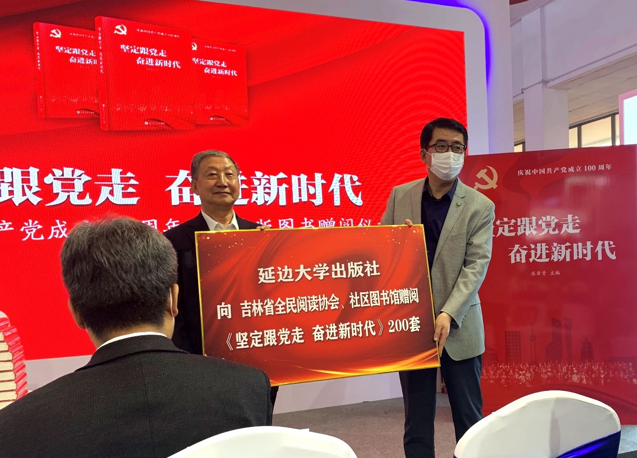 3月31日,在第三十四届北京图书订货会开幕之际,延边大学出版社携庆祝中国共产党成立100周年主题出版图书——《坚定跟党走 奋进新时代》参会,并隆重举行新书发布暨图书赠阅仪式。